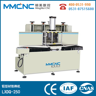 用于中挺端面、臺階面及端面槽的成型加工及鋁幕墻型材的榫槽加工采用雙向快速定位、夾緊機(jī)構(gòu),便于實現(xiàn)自動化作業(yè)自動進(jìn)給,勞動強(qiáng)度小。